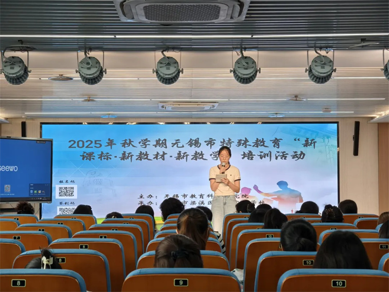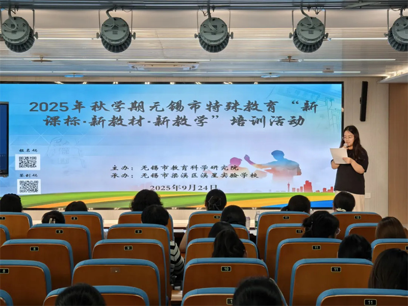 为深入贯彻落实国家、省、市《“十四五” 特殊教育发展提升行动计划》精神,进一步深化特殊教育课程改革,切实提升课堂教学效益与教育教学质量,由无锡市教育科学研究院主办,梁溪区溪星实验学校承办的2025 年秋学期无锡市特殊教育 “新课标・新教材・新教学” 培训活动于 9 月 24 日在我校顺利举行。
