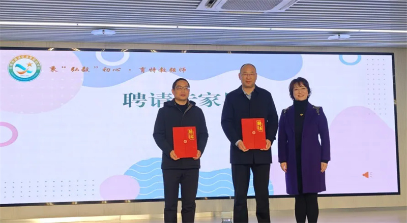 活动伊始,凌伟部长代表区教发中心致辞,对学院成立表示热烈祝贺,肯定了溪星实验学校在特教领域的深耕成果与示范作用,为全体教师送上殷切期许。随后,胡晓军副院长与浦建军副院长共同为 “弘毅” 特教教师成长学院揭牌,标志着该校特教教师专业发展迈入系统化、规范化新阶段。现场还举行了特聘专家聘任仪式,张静校长为胡晓军、浦建军两位副院长颁发聘书,两位专家将分别担任 “弘毅・守星人” 四有好教师培育团队及学校人工智能建设项目的特聘专家导师。