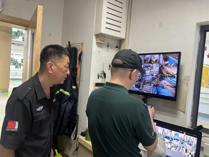 在校园安全检查环节,姚斌督学重点查看 “人防、物防、技防” 建设落实情况。他先后走访校园门卫室、教学楼、运动场地等关键区域,仔细检查安保人员配备、安防器械存放与使用记录,查看校园监控设备覆盖范围及运行状态,确认消防设施、应急照明等物防设备是否完好有效。同时,详细询问学校安全管理制度执行、日常安全巡查频次及应急演练开展情况,对学校重视安全细节、夯实安全管理基础的做法给予肯定。
